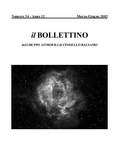Ricordando un amico; Editoriale; 8 giugno 2004; Una bella esperienza di divulgazione astronomica; Sezione stelle variabili; "il telescopio".